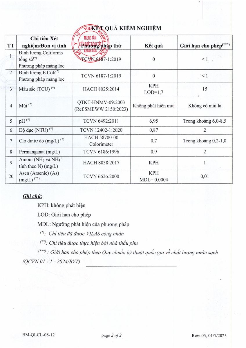 Kết quả xét nghiệm nước tháng 12-2025(hệ thống Ninh Xuân)