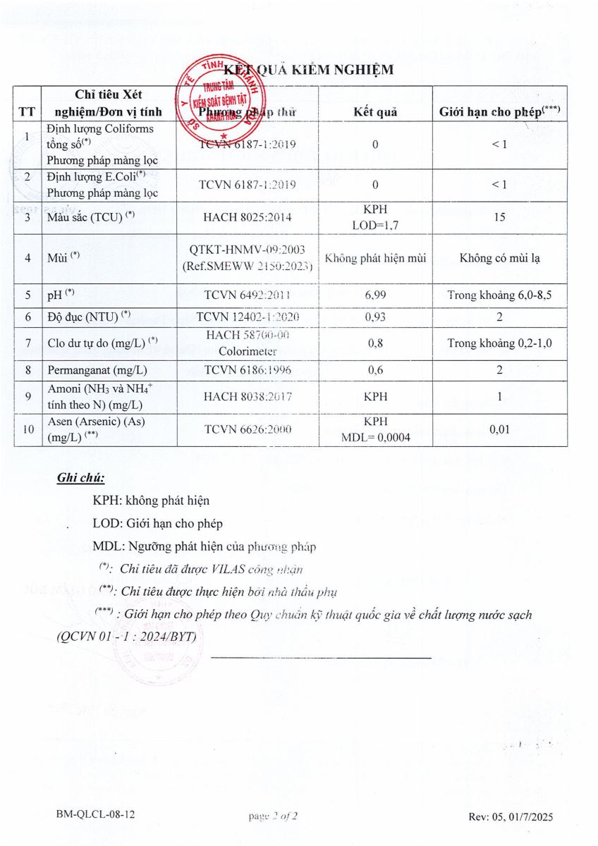 Kết quả xét nghiệm nước tháng 12-2025(hệ thống Ninh Xuân)