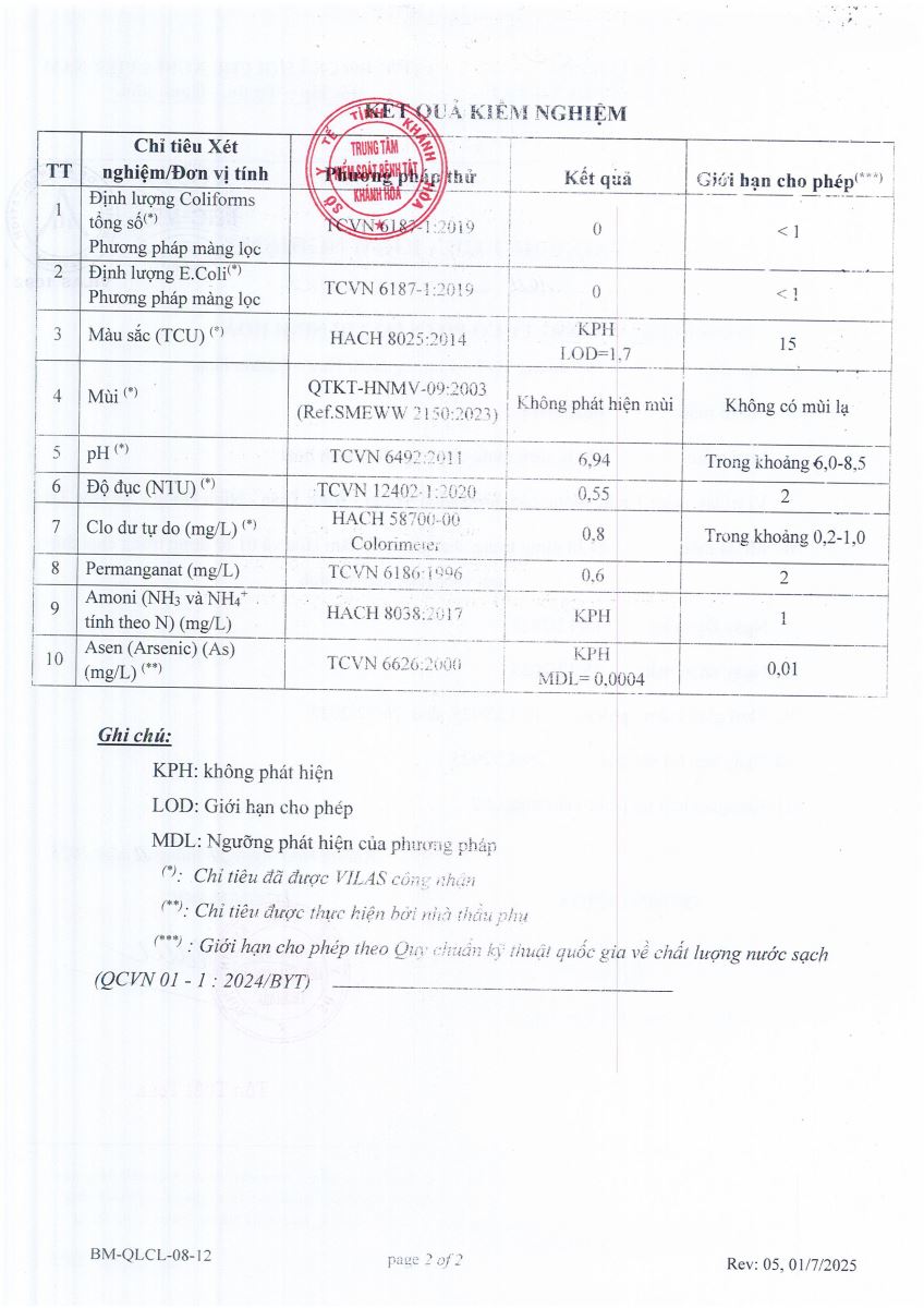 Kết quả xét nghiệm nước tháng 12-2025(hệ thống Ninh Sơn)