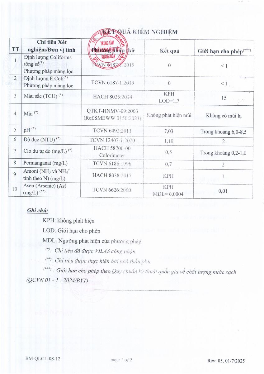 Kết quả xét nghiệm nước tháng 9-2025(hệ thống Ninh Lộc)