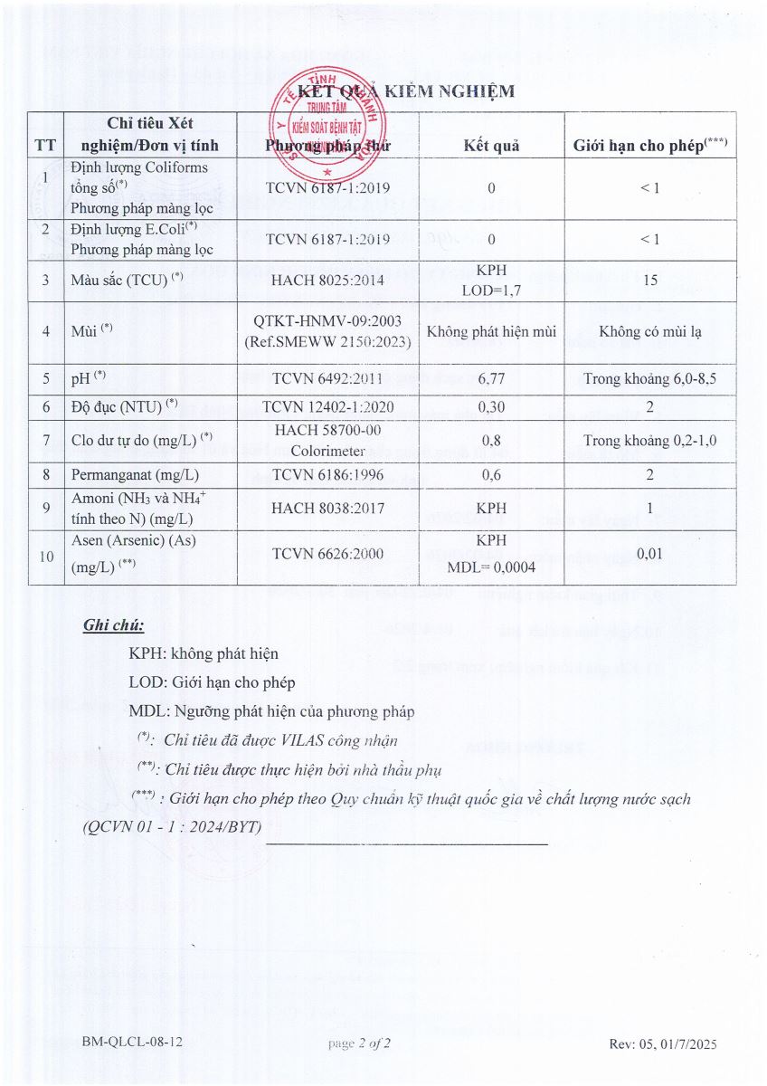 Kết quả xét nghiệm nước tháng 2-2026(hệ thống Ninh Xuân)