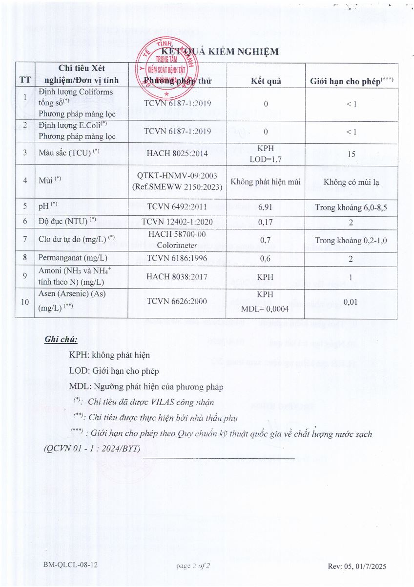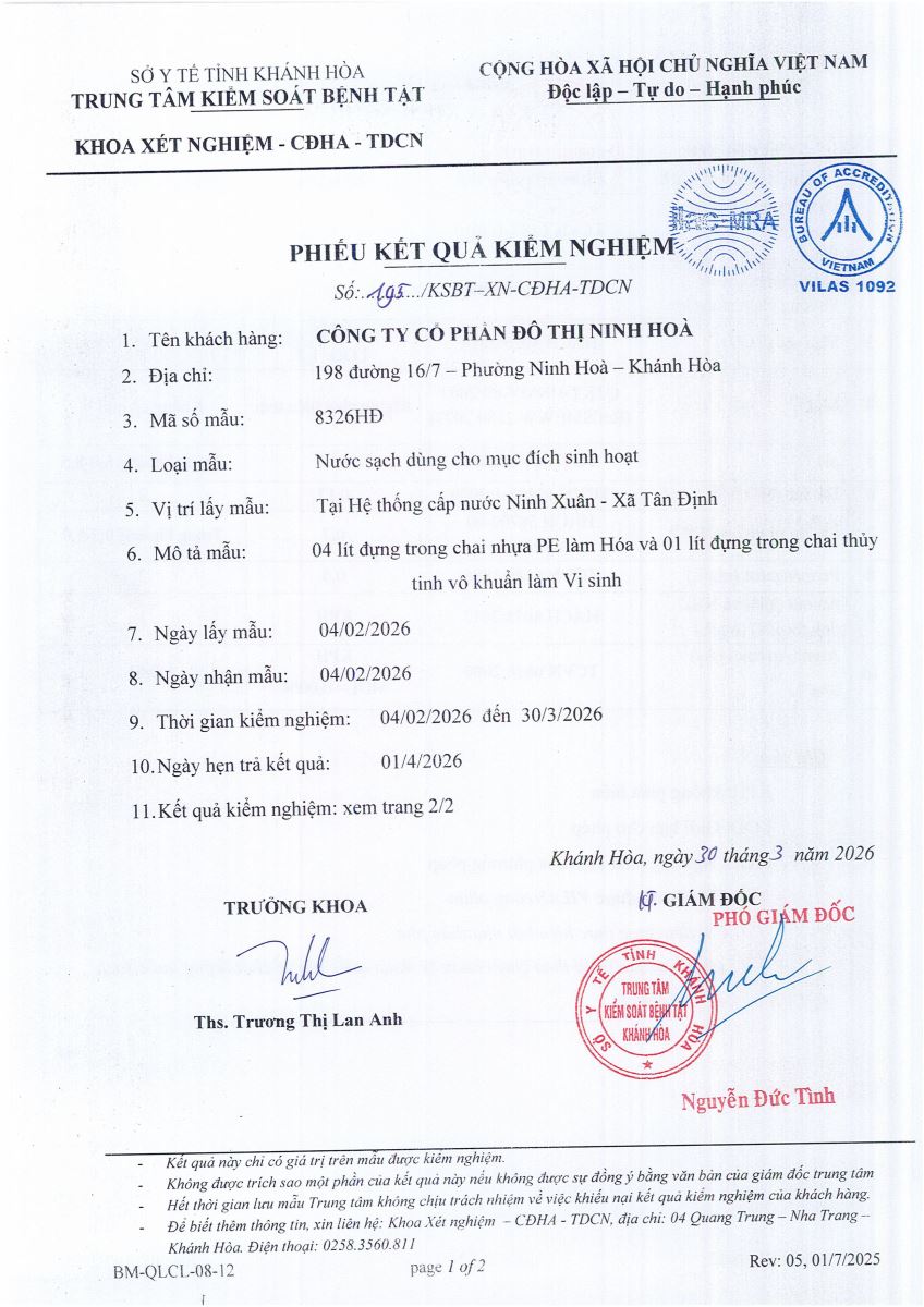 Kết quả xét nghiệm nước tháng 2-2026(hệ thống Ninh Xuân)