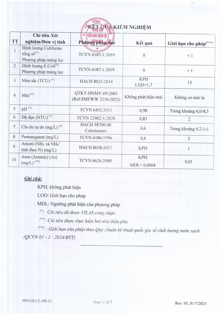 Kết quả xét nghiệm nước tháng 2-2026(hệ thống Ninh Lộc)